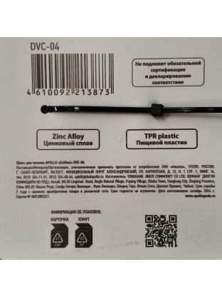 Пресс для чеснока Apollo, DaVinci, цинковый сплав, пластик, навеска, DVC-04