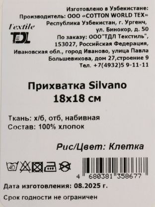 Прихватка 18х18 см Silvano: стильная защита рук на кухне из 100% хлопка — идеальный выбор для дома, дачи и подарка, с доставкой по выгодной цене.