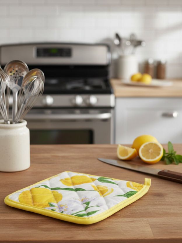 Прихватка 18х18 см Silvano: 100% хлопок, лимонный принт, Узбекистан — яркое решение для кухни, безопасный хват без ожогов, доступная цена.