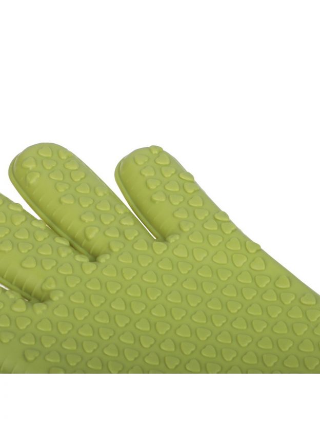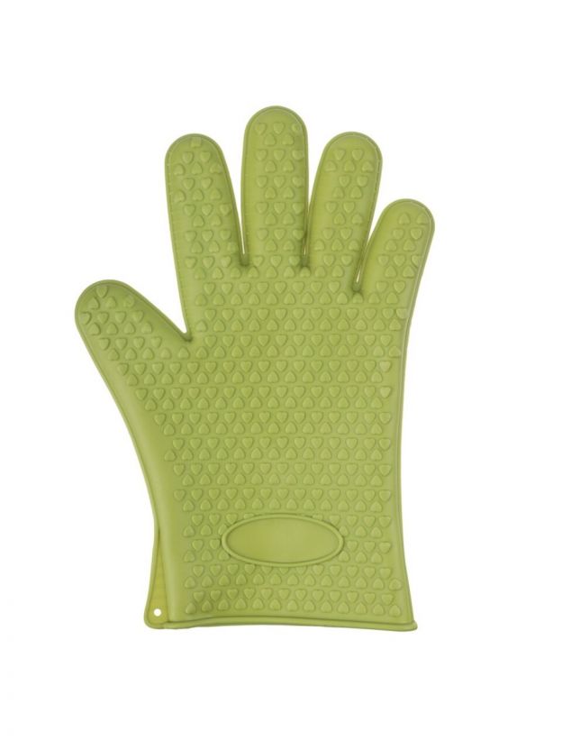 - Размер 26х19 см и гибкий силикон — подходит для любой руки, устойчив к высоким температурам, легко моется.