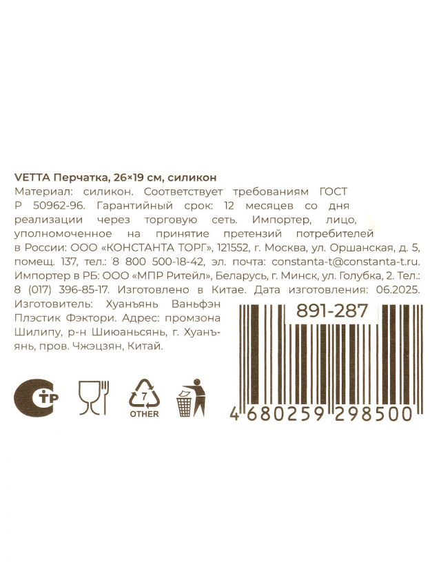 Какой размер у силиконовой прихватки-перчатки Vetta?