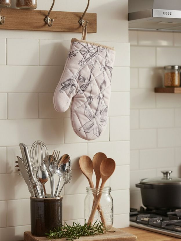 - Надёжная термозащита: плотный хлопок и форма варежки минимизируют риск ожога при работе с горячей посудой.