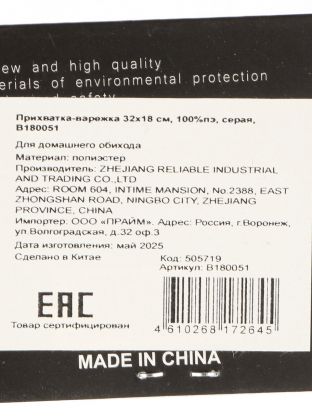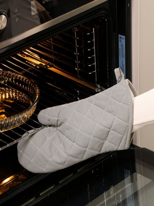 Прихватка-варежка 32х18 см серая: безопасно и удобно для кухни, дачи и подарка. Легко ухаживать, долговечна, защищает от ожогов — ваш идеальный помощник.