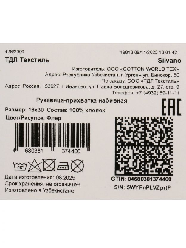 Прихватка-варежка Silvano «Флер» 30х18 см: безопасное и стильное решение для кухни, дачи и подарка. 100% хлопок — защита рук и долговечность по доступной цене.