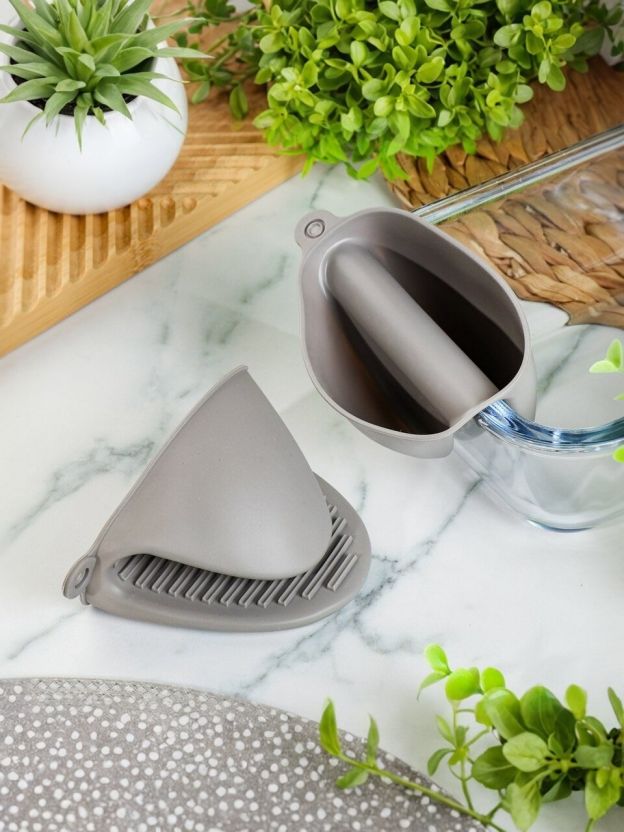 - Прихватка не скользит на руке и обеспечивает надежный захват.