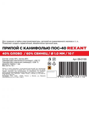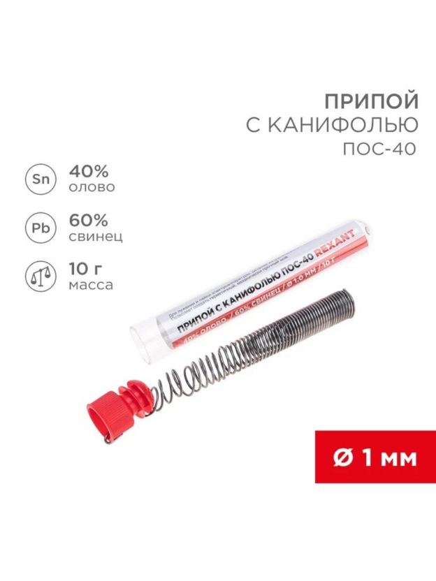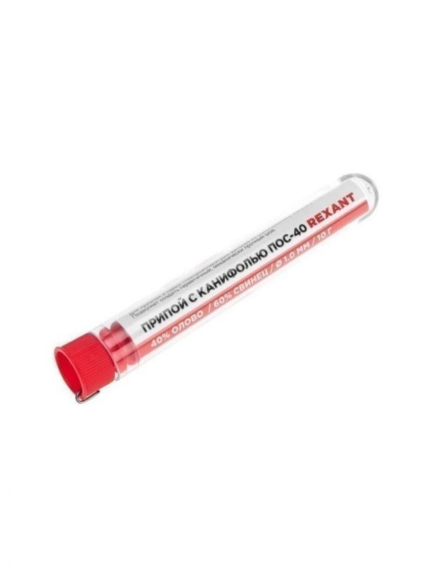 Припой с канифолью Sn40% Pb60%, ПОС-40 REXANT d1 мм, колба 09-3100 — идеальный выбор для пайки в домашних условиях и на даче. Высокое качество состава обеспечивает надежное соединение деталей и простоту в использовании.