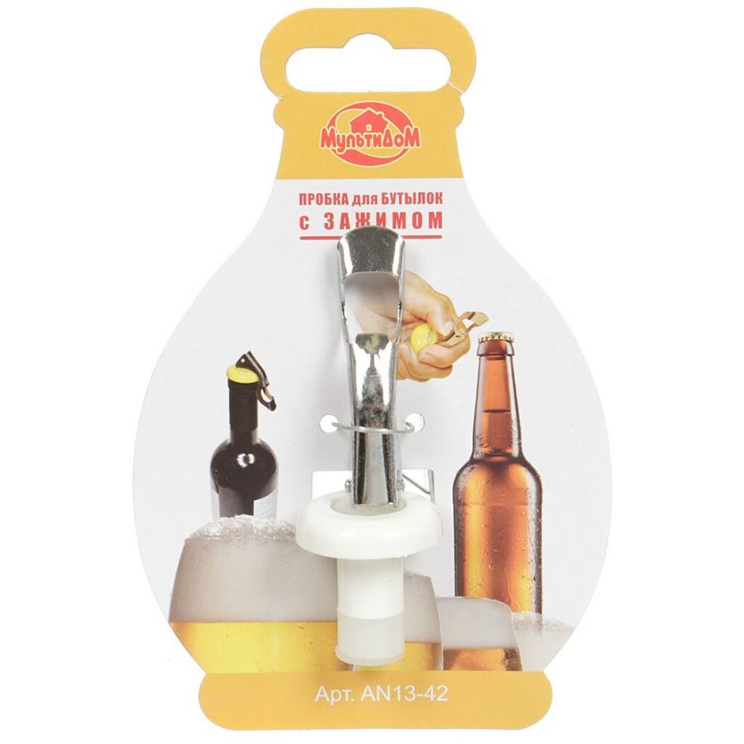 Пробка для бутылки, пластик, с зажимом, в ассортименте, навеска, Мультидом, AN13-42