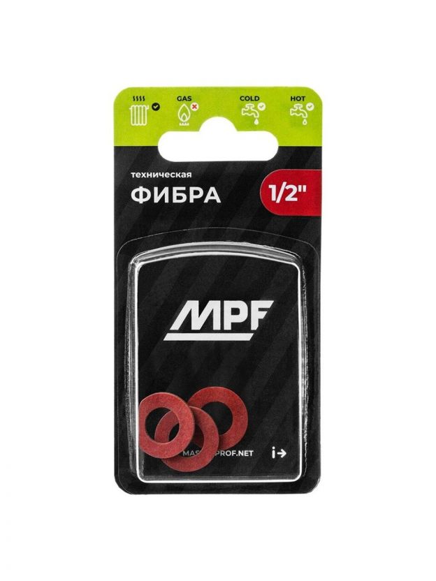 В индивидуальной упаковке — 3 прокладки, диаметр подключения 1/2", материал — фибра, цвет красный, бренд MasterProf, артикул ИС.131248.