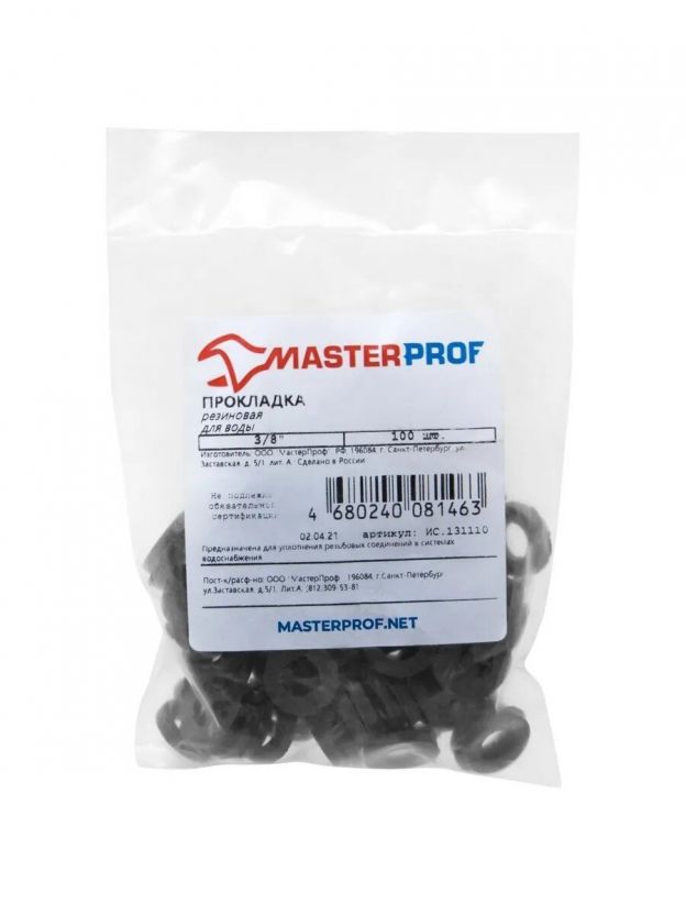 Прокладка сантехническая для воды, 100 шт, 3/4", резина, MasterProf, пакет, ИС.131087