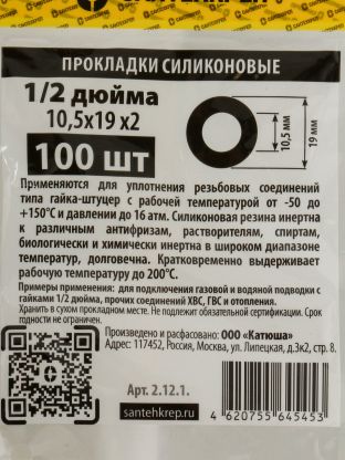Силиконовые прокладки 1/2" (10,5*19*2 мм) СантехКреп — набор из 100 штук для герметичных соединений в сантехнике, экономия времени и денег при ремонте.