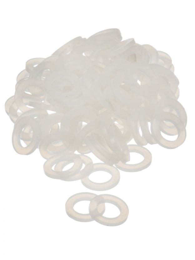 В комплекте 100 силиконовых прокладок, товар произведён и поставляется от российского бренда СантехКреп.