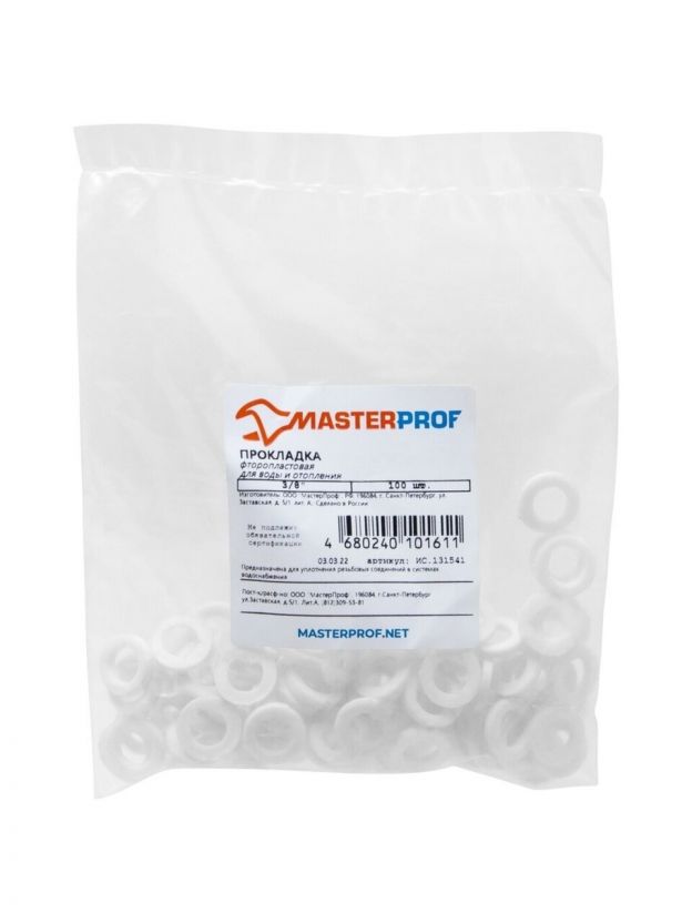 Прокладка из фторопласта MasterProf предназначена для герметизации резьбовых соединений в системах горячего и холодного водоснабжения, а также в системах отопления и в газовом оборудовании.