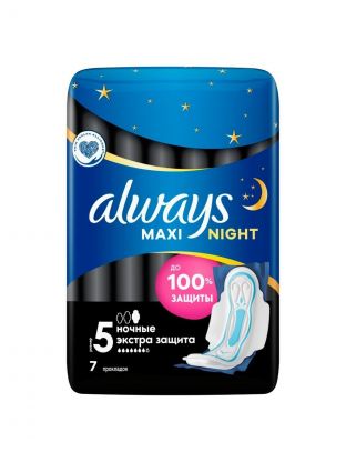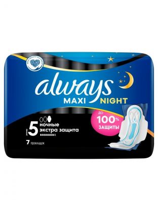 Always Maxi Secure Night Extra: максимальная защита ночью, 7 шт — уверенность без компромиссов в любой ситуации. Купите выгодно для дома и путешествий.