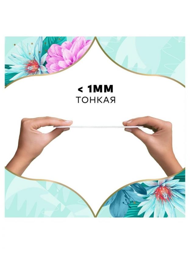Прокладки ультратонкие, подходят для белья любого типа (в том числе стринги), обеспечивают незаметность и комфорт в течение всего дня.