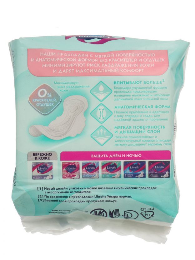 Прокладки женские Libretta Sensitive Normal 8 шт — надёжная защита для чувствительной кожи, комфорт на весь день, выгодная цена и компактная упаковка. Почему выбирают: Гипоаллергенный верхний слой — идеально для чувствительной кожи, минимизирует риск раздражения. Оптимальный размер и средняя впитываемость — подходят для ежедневного использования, толщина не заметна под одеждой. Удобны в поездках, на даче и дома — компактная пачка из 8 штук всегда под рукой. Прокладки женские Libretta Sensitive Normal — это выбор для тех, кто ищет деликатную защиту без компромиссов. Благодаря гипоаллергенному покрытию и продуманной анатомической форме, они подходят для ежедневного применения и не вызывают дискомфорта даже при длительном ношении. Часто спрашивают: «какие прокладки лучше для чувствительной кожи?» — Sensitive Normal от Libretta созданы специально для этого запроса, что подтверждено отзывами пользователей и экспертными тестами. В отличие от аналогов, эти прокладки не содержат ароматизаторов и красителей, что снижает риск аллергии и раздражения. Если вы ищете, чем отличаются недорогие женские прокладки для дачи или поездок — обратите внимание на компактную упаковку Libretta, которую удобно взять с собой. Как использовать: просто снимите защитную ленту и зафиксируйте прокладку на белье — она не смещается и не создает складок. Частые вопросы: Какой размер и впитываемость у прокладок Libretta Sensitive Normal? Модель Sensitive Normal рассчитана на средний уровень выделений, имеет стандартный размер и толщину, что делает её универсальной для повседневного использования. Подходят ли эти прокладки для чувствительной кожи? Да, верхний слой гипоаллергенный, не содержит ароматизаторов и красителей, что снижает риск раздражения даже при длительном ношении. Сколько прокладок в упаковке и где произведены? В упаковке 8 штук, артикул 85751. Продукт реализуется в России и соответствует требованиям безопасности.