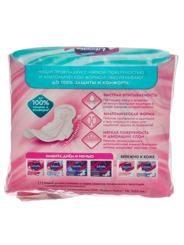 Прокладки женские Libretta Ultra Super 8 шт — надёжная защита в критические дни: максимум комфорта, уверенность и экономия для каждой женщины. Почему выбирают: Ультратонкая технология Ultra Super — незаметно под одеждой, надежно даже при обильных выделениях. Оптимальный размер и анатомическая форма: 8 прокладок в упаковке, мягкая поверхность, не вызывает раздражения. Удобны для дома, работы, поездок и активного отдыха — компактно помещаются в сумке и косметичке. Прокладки Libretta Ultra Super — это выбор женщин, которым важно сочетание комфорта, безопасности и экономии. Благодаря инновационной впитывающей системе они обеспечивают длительную сухость и защиту даже при интенсивных нагрузках. Если вы ищете, какие прокладки лучше выбрать для обильных выделений или как подобрать средство для чувствительной кожи, обратите внимание на гипоаллергенную поверхность и удобную форму Libretta Ultra Super. В отличие от аналогов, эти прокладки не скатываются, не вызывают дискомфорта при длительном ношении и подходят для использования как дома, так и в поездках. Для многих актуален вопрос: подходят ли такие прокладки для ежедневного применения? Ответ: модель Ultra Super рассчитана на дни с максимальными выделениями, обеспечивая уверенность в любой ситуации. Если вы ищете, чем отличаются прокладки Ultra Super от стандартных, — здесь увеличенный впитывающий слой и усиленная фиксация. Частые вопросы: Каковы размеры и особенности прокладок Libretta Ultra Super, 8 шт? Прокладки имеют удлинённую форму, оптимальны для обильных выделений, оснащены мягкой гипоаллергенной поверхностью. В упаковке 8 штук, артикул 86181, страна продавца — Россия. Подходят ли эти прокладки для чувствительной кожи и активного образа жизни? Да, благодаря анатомической форме и нежной поверхности Libretta Ultra Super не вызывают раздражения, не ощущаются под одеждой, удобны для спорта, работы и поездок. Чем отличаются прокладки Ultra Super от обычных? Ultra Super отличаются увеличенным впитывающим слоем и ультратонкой структурой — это обеспечивает надёжную защиту при максимальных выделениях и комфорт даже в течение всего дня.