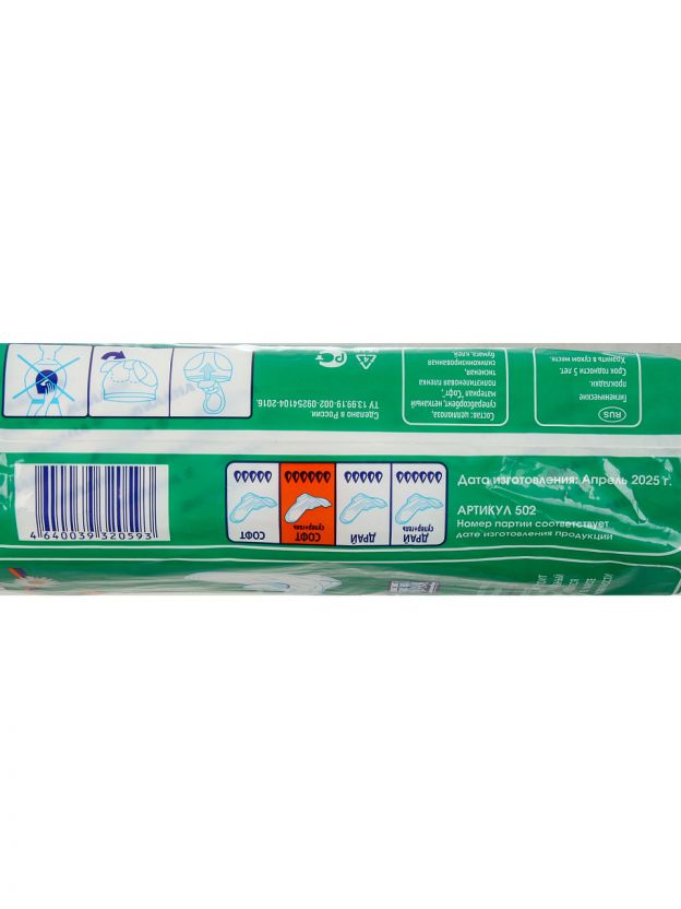 Снимите защитную ленту и зафиксируйте прокладку на белье мягкой стороной вверх. Благодаря увеличенному размеру и гелю, прокладки подходят для дневного и ночного применения.