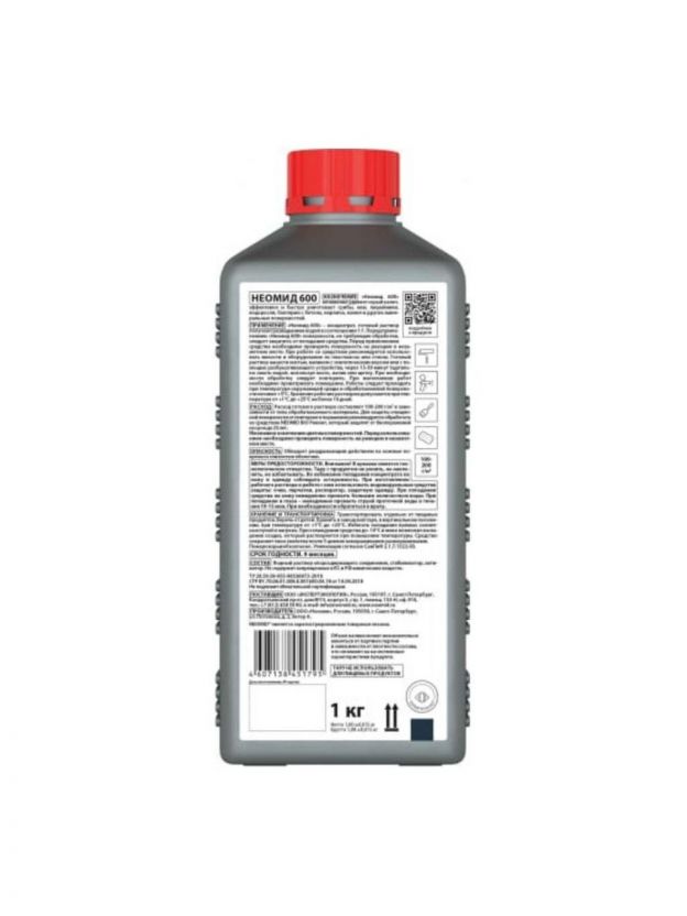 Транспортировать отдельно от пищевых продуктов. Беречь от детей. Хранить в заводской таре, в вертикальном положении, при температуре от +1°С до +25°С. Избегать попадания прямых солнечных лучей и нагрева. Гарантийный срок хранения 9 месяцев. Вскрытый препарат использовать в течение 10 дней. При охлаждении средства до -10°С и ниже возможно выпадение осадка, который растворяется при повышении температуры. Средство сохраняет свои свойства после 5 циклов замораживания-размораживания. Neomid 600 пожаровзрывобезопасен.