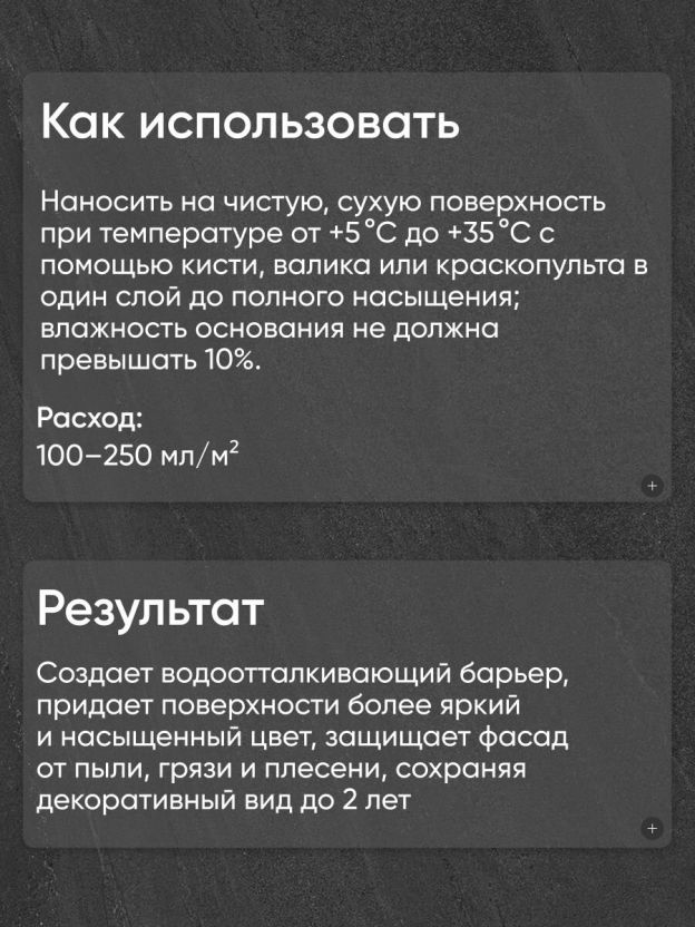 - Расход: 100-250 мл/м2.