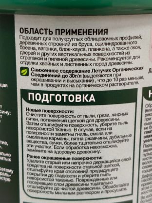 • Сохраняет видимой текстуру древесины, полуматовая.