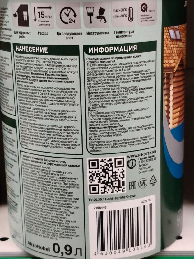 • Гибридное акрил-алкидное связующее образует атмосферостойкое паропроницаемое покрытие, древесина продолжает «дышать».