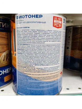 Применение: Готов к применению. Перед использованием перемешать. Наносить 2-3 слоя кистью, валиком, губкой, методом распыления при температуре от +5 до +35_С и относительной влажности до 80%. Избегать сквозняков и прямых солнечных лучей. Равномерно распределить состав вдоль волокон древесины, излишки промокнуть сухой чистой ветошью или перераспределить на сухие участки. После нанесения краскопультом выровнять покрытие кистью. Торцы пропитать до насыщения. После высыхания первого слоя зашлифовать поверхность мелкой наждачной бумагой. Проникающая способность, оттенок и интенсивность цвета зависят от вида, пористости, влажности, качества обработки поверхности древесины и количества слоёв.