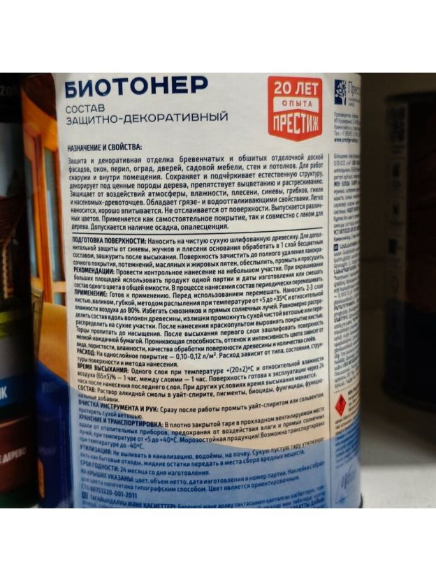 Применение: Готов к применению. Перед использованием перемешать. Наносить 2-3 слоя кистью, валиком, губкой, методом распыления при температуре от +5 до +35_С и относительной влажности до 80%. Избегать сквозняков и прямых солнечных лучей. Равномерно распределить состав вдоль волокон древесины, излишки промокнуть сухой чистой ветошью или перераспределить на сухие участки. После нанесения краскопультом выровнять покрытие кистью. Торцы пропитать до насыщения. После высыхания первого слоя зашлифовать поверхность мелкой наждачной бумагой. Проникающая способность, оттенок и интенсивность цвета зависят от вида, пористости, влажности, качества обработки поверхности древесины и количества слоёв.