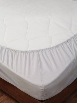 - Уникальное преимущество: прочная простыня из натурального поплина на резинке — не сползает, легко надевается даже на высокий матрас до 25 см.