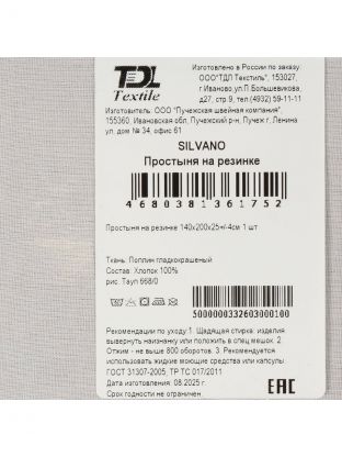 Простыня на резинке 1,5-спальная Silvano, 140х200х25 см, 100% хлопок поплин: идеальный выбор для комфортного сна и быстрой смены постельного белья.