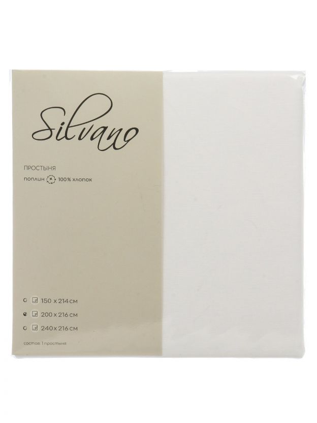 Простыня 2-спальная, 200 х 216 см, 100% хлопок, поплин, Silvano, Белый