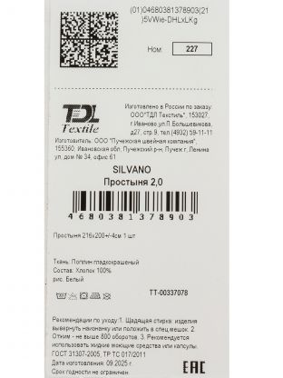 Простыня выполнена из натурального хлопка (поплин), отличается мягкостью, приятной текстурой и не вызывает раздражения даже при длительном контакте с кожей.