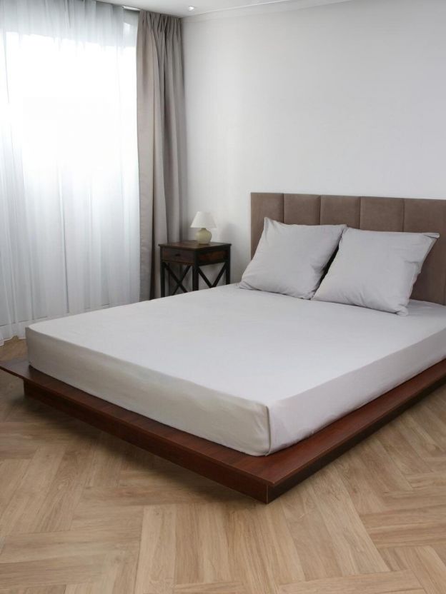 В отличие от синтетических аналогов, хлопковый поплин быстро впитывает влагу, не электризуется и приятен на ощупь. Если вы ищете, какая простыня лучше для дачи, повседневного использования или в подарок — однотонный дизайн в универсальном серо-тауповом оттенке органично впишется в любой интерьер. Простыня не на резинке, что облегчает смену белья и подходит для матрасов стандартной высоты. Для тех, кто ищет, как использовать двуспальную простыню без лишних хлопот, — это практичный и надёжный выбор.