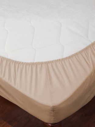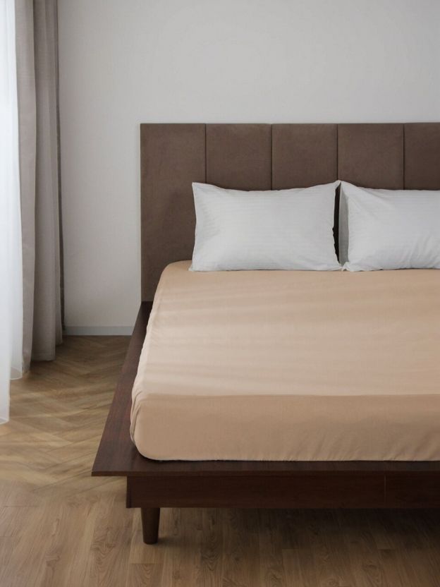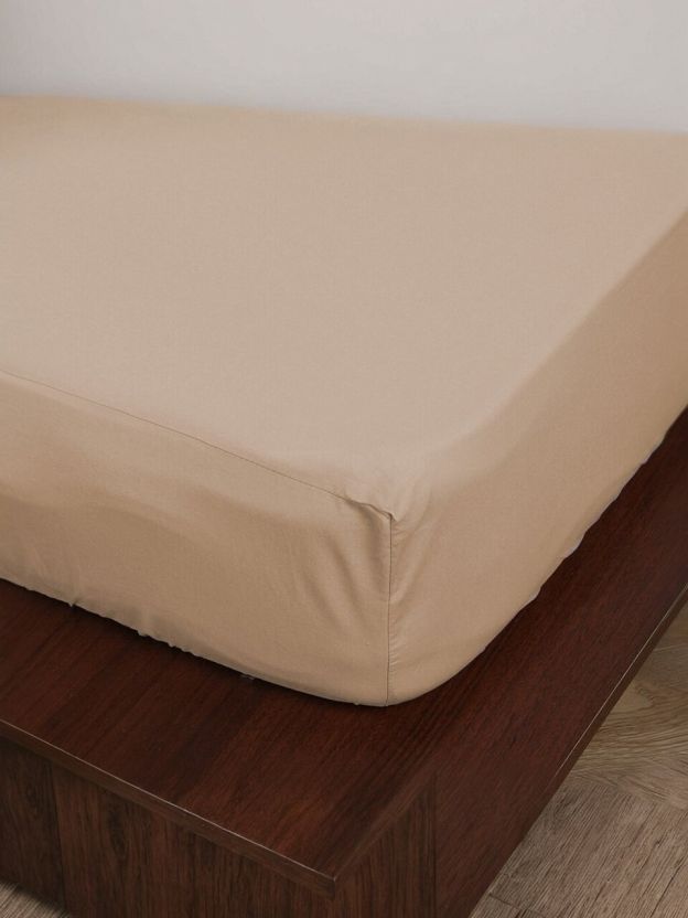 Простыня на резинке Silvano Латте 180х200х25 см — комфортный сон без складок: 100% хлопок-поплин, натуральный беж, идеально сидит на высоких матрасах.