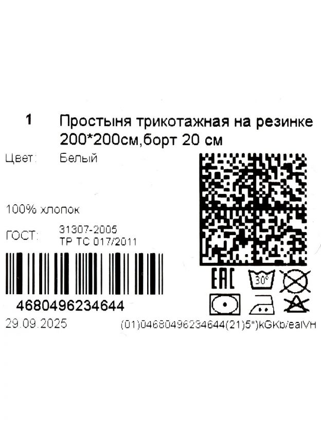 Обратите внимание на размер — эта простыня рассчитана на матрас 200х200 см высотой до 20 см. Эластичная резинка обеспечивает плотное прилегание по периметру, что исключает соскальзывание.