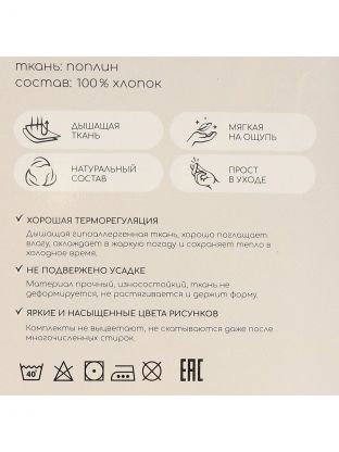 - 100% натуральный хлопок поплин — дышащий, гипоаллергенный материал для максимального комфорта.