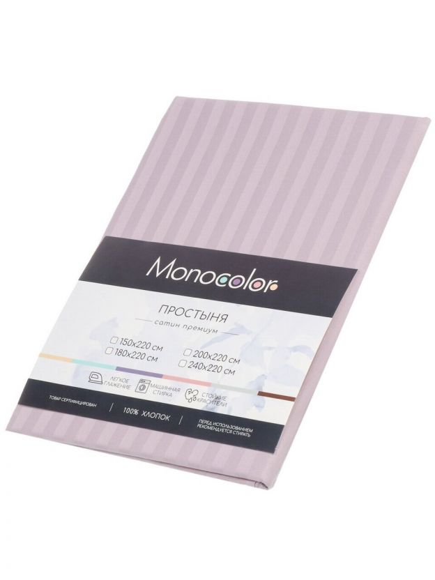 Простыня евро, 220 х 240 см, 100% хлопок, страйп-сатин, 140 г/м2, сирень, Monocolor, рис.4308