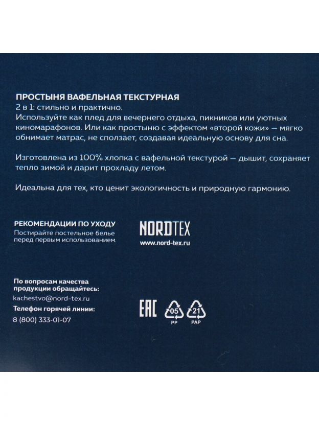Однотонный дизайн делает простынь-плед идеальным решением для современных интерьеров, а натуральный хлопок обеспечивает оптимальную циркуляцию воздуха и быстрое впитывание влаги. Благодаря размеру евро 200х200 см изделие подходит для больших кроватей, обеспечивая максимальный комфорт на протяжении всей ночи. Вафельная текстура ткани придает изделию особую мягкость и эластичность, сохраняя форму и внешний вид даже после многочисленных стирок.