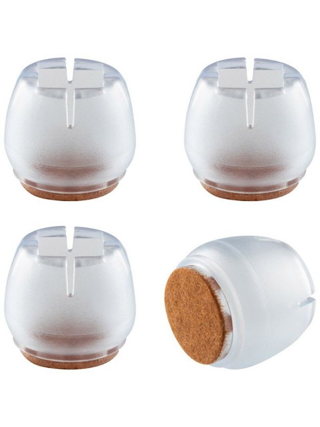 Протектор для ножек мебели 4 шт: тишина и защита пола за 1 минуту — силикон+войлок S, круг 20-25 мм, квадрат 18-21 мм, 105020.