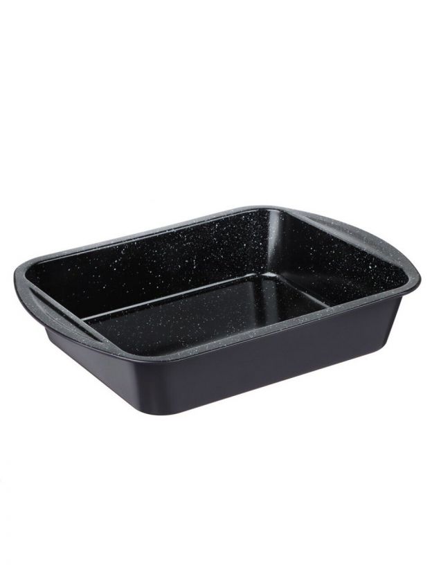Размер 27х35х7 см, прямоугольная форма. Идеален для запекания больших порций пирога, курицы, рыбы или овощей, универсален для домашней и дачной кухни.