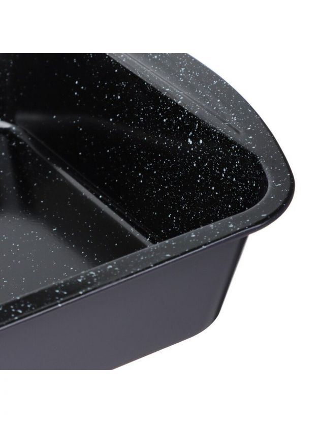 Размер 27х35х7 см, прямоугольная форма. Идеален для запекания больших порций пирога, курицы, рыбы или овощей, универсален для домашней и дачной кухни.