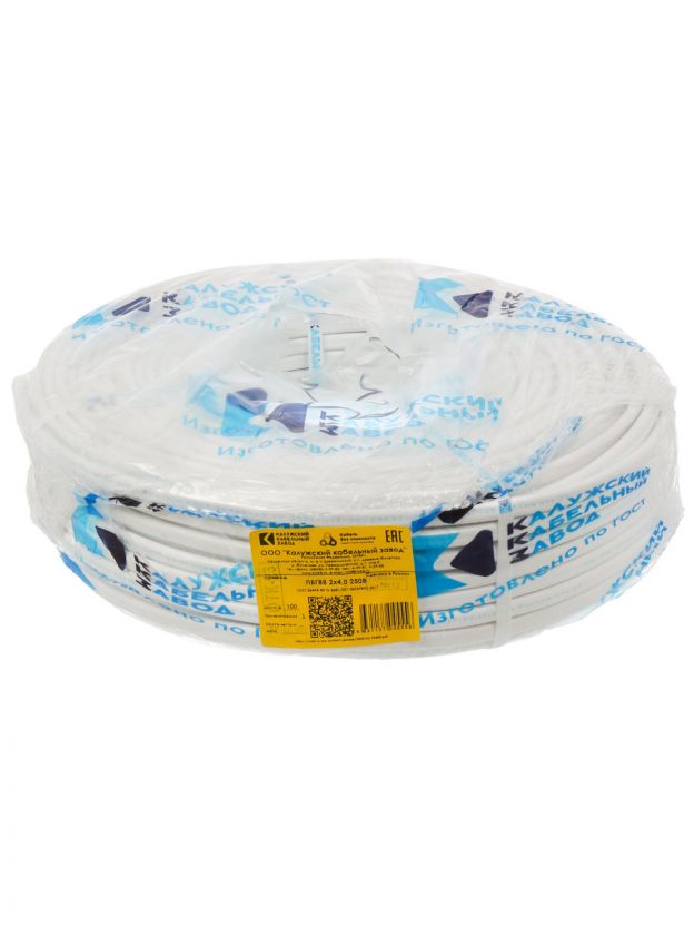Провод ПУГНП, 2х4 мм2, 100 м, медь, ПуГВВ/ПБППГ/ПУГНП/ПБГВВ, ГОСТ, белый, ККЗ