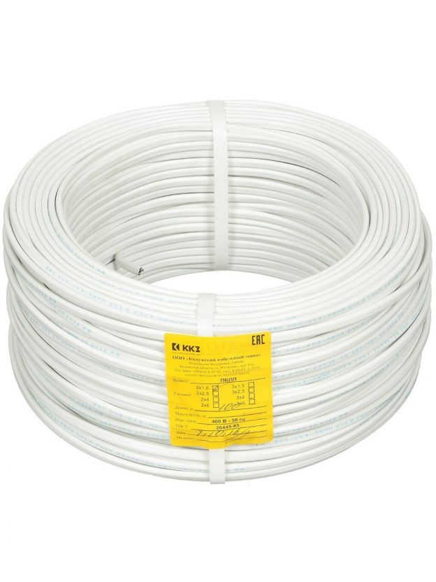 Провод ПУНП, 2х1.5 мм2, 100 м, медь, ПуВВ, ПБПП, ПУНП, ПБВВ, ГОСТ, белый, ККЗ