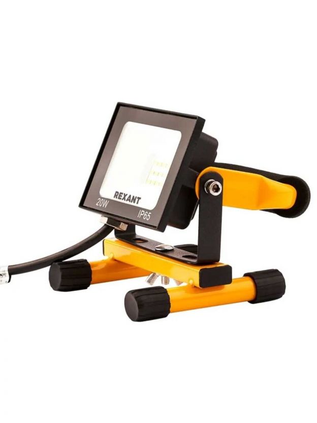 Светодиодный прожектор-переноска Rexant холодного белого свечения 6500 К мощностью 20 Вт предназначен для декоративной и фасадной подсветки зданий, рекламных конструкций, памятников, колонн, деревьев, спортивных сооружений, открытых пространств и объектов.
