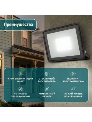 Прожектор светодиодный, Эра, LPR-023-0-65K-050, 50 Вт, 6500 К, IP65, 4000 Лм, уличный, Б0052024
