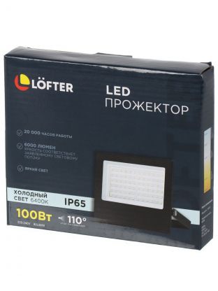 Прожектор светодиодный, Lofter, LG172L-100W2, 100 Вт, 6400 К, IP65, 8000 Лм, черный