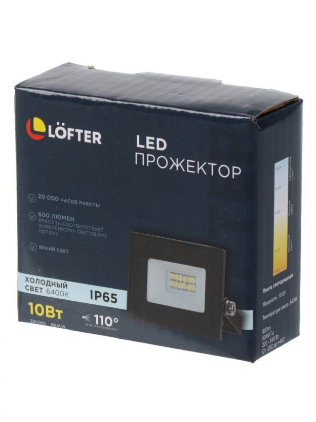 Прожектор светодиодный, Lofter, LG172L-10W2, 10 Вт, 6400 К, IP65, 800 Лм, черный