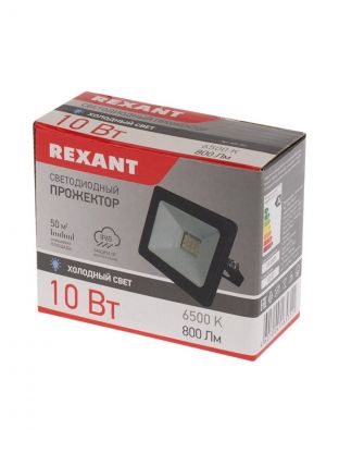 Прожектор светодиодный, Rexant, 10 Вт, 6500 К, IP65, 800 Лм, 200-260В, холодный свет, 605-001