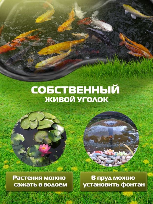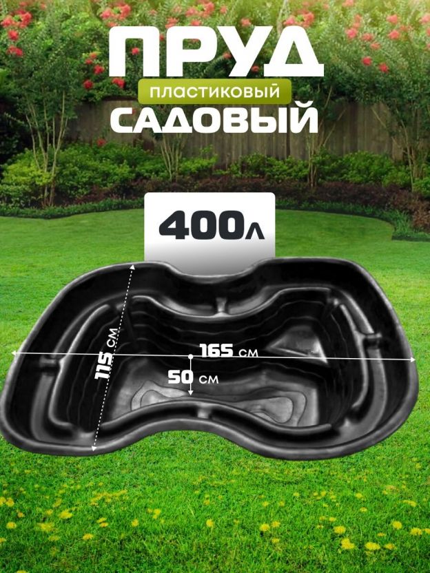 Пруд садовый декоративный Байкал, 400 л, черный, Полимерлист – идеальное решение для создания стильного акцента на приусадебном участке. Благодаря современному дизайну и большому объему, такой искусственный водоем гармонично впишется в любой ландшафт, подчеркнет индивидуальность двора или сада и позволит реализовать самые смелые идеи по благоустройству территории. Черный цвет придает пруду элегантность и визуальную глубину, а прочный пластик гарантирует долгий срок службы даже при интенсивной эксплуатации.