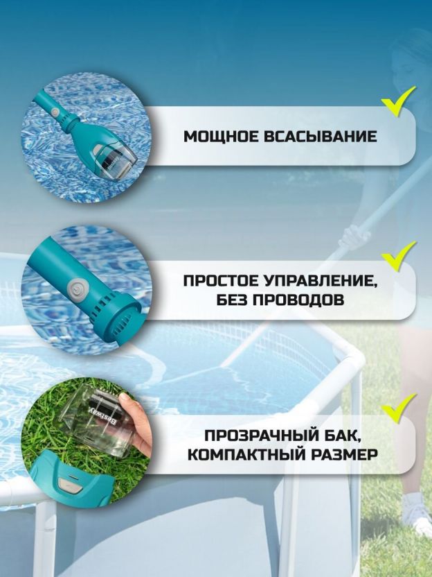 Выгода от покупки очевидна: экономия времени и сил на уборку, а также возможность наслаждаться чистой водой без лишних забот. Пылесос Bestway AquaTech Cordless — это инвестиция в комфорт и качество отдыха. Не упустите возможность сделать уход за бассейном проще и приятнее с этим высокотехнологичным устройством.