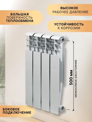 Радиатор алюминий, 500х100 мм, Tropic, 4 секции, 7601.018